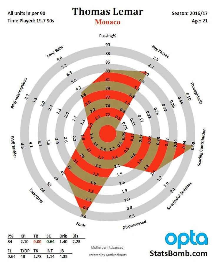 Игроки могут по-разному выходить из-под прессинга. Используя пас (яркий пример Юлиан Вайгль) или с помощью дриблинга ( Мусса Дембеле). Лемар в этом плане ближе к бельгийцу.  Причем Тома является одним из важнейших элементов Монако в преодолении прессинга и переходе к следующей фазе атаки.