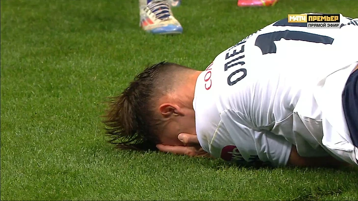 Если посмотреть замедленный повтор нарушения, в котором Безбородов попадает в кадр, можно заметить, с какой скоростью арбитр реагирует на этот момент. Олейников еще не успел полностью упасть, как прозвучал свисток.