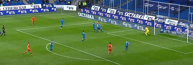67-я минута матча: Урал разыгрывает угловой и рвется по флангу, где остановить Шатова бежал Бальбуэна, но тот был обыгран в пас и получивший мяч Бикфалви ворвался в штрафную