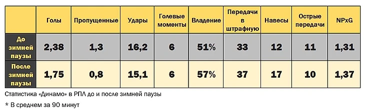 Как мы видим, отличия после зимней паузы несущественные, кроме ключевого пункта "голы" , где команда потеряла тот азарт, что был вначале, но до конца чемпионата время есть. Вдруг еще удивят?