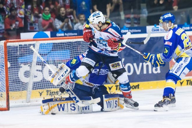 Изучив перед началом матча программку, я с удивлением заметил, что в составе обеих команд (а в гости пожаловал "Злин") выступают хоккеисты, которые когда-то были в числе ведущих в России, причем очень давно, еще до появления КХЛ - Салфицки, Пиша, Марушак, Сомик, Чаянек. Вообще, в чешской Экстралиге практически нет легионеров (если не считать соседей из Словакии), а лучшие местные кадры выступают либо за океаном, либо в КХЛ. Следовательно, спрос на опытных мастеровитых игроков велик, и они нанаходятся на ведущих ролях в своих клубах. Так, трем лучшим бомбардирам лиги - Тону, Глинке и Беднаржу - 40, 37 и 37 лет соответственно.