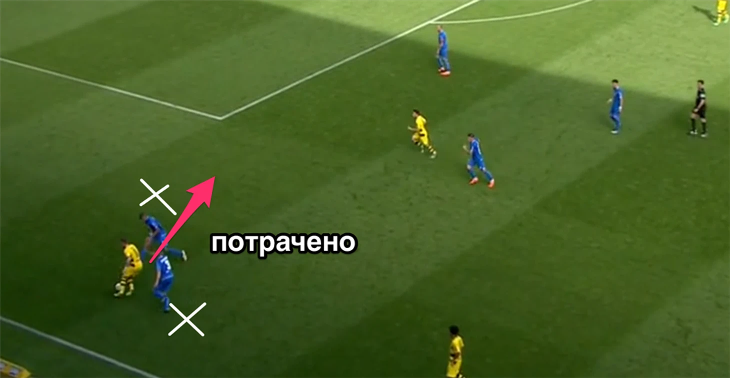 После того он старался двинуть мяч дальше и сместиться на фланг