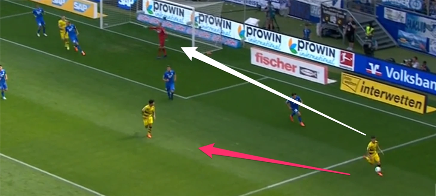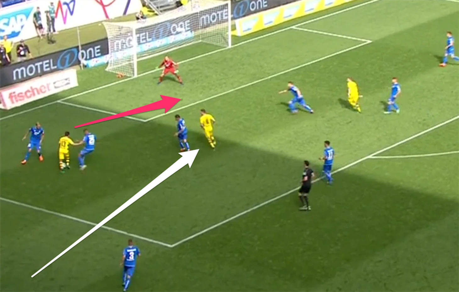Начиналось все с очередного бесконечного перекатывания мяча без каких-либо сюрпризов для защиты Хоффенхайма.Но все перевернулось, когда Ройс одним движением оставил в дураках сразу двух соперников и оставил мяч Геррейро, а сам продолжил движение в штрафную площадку