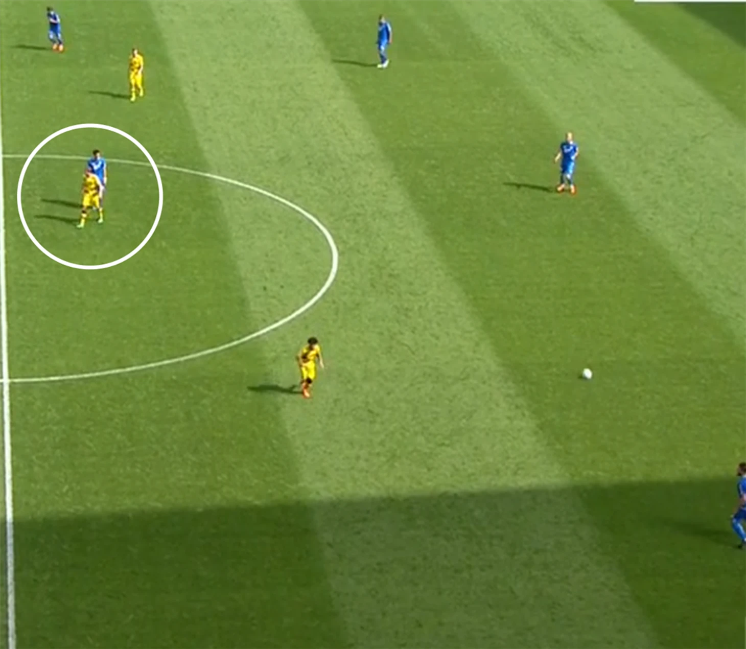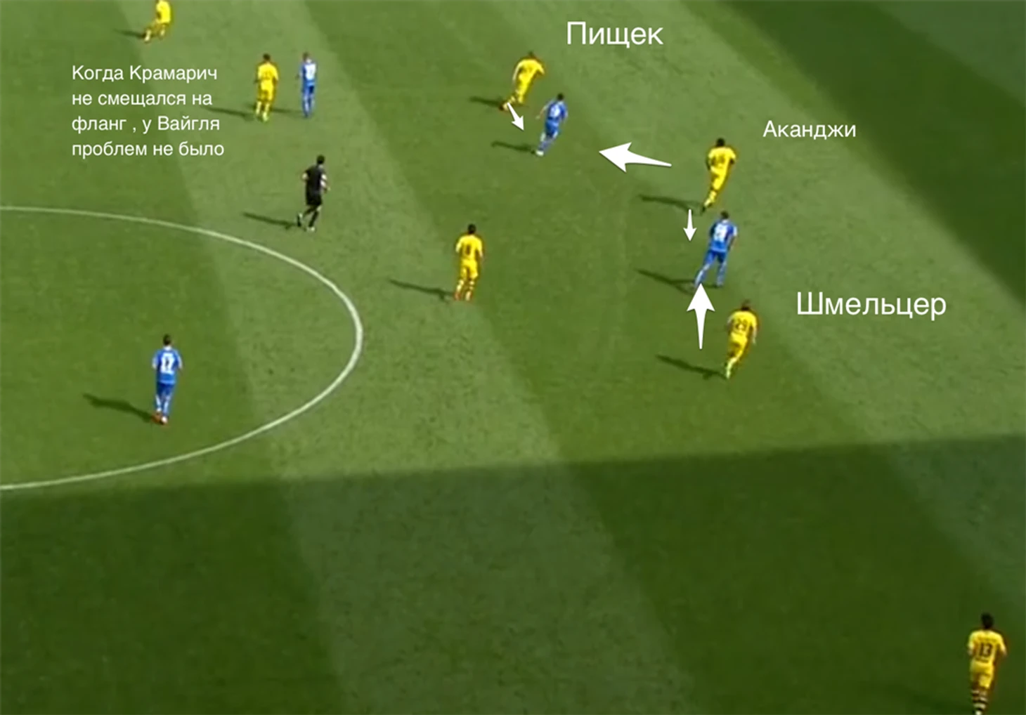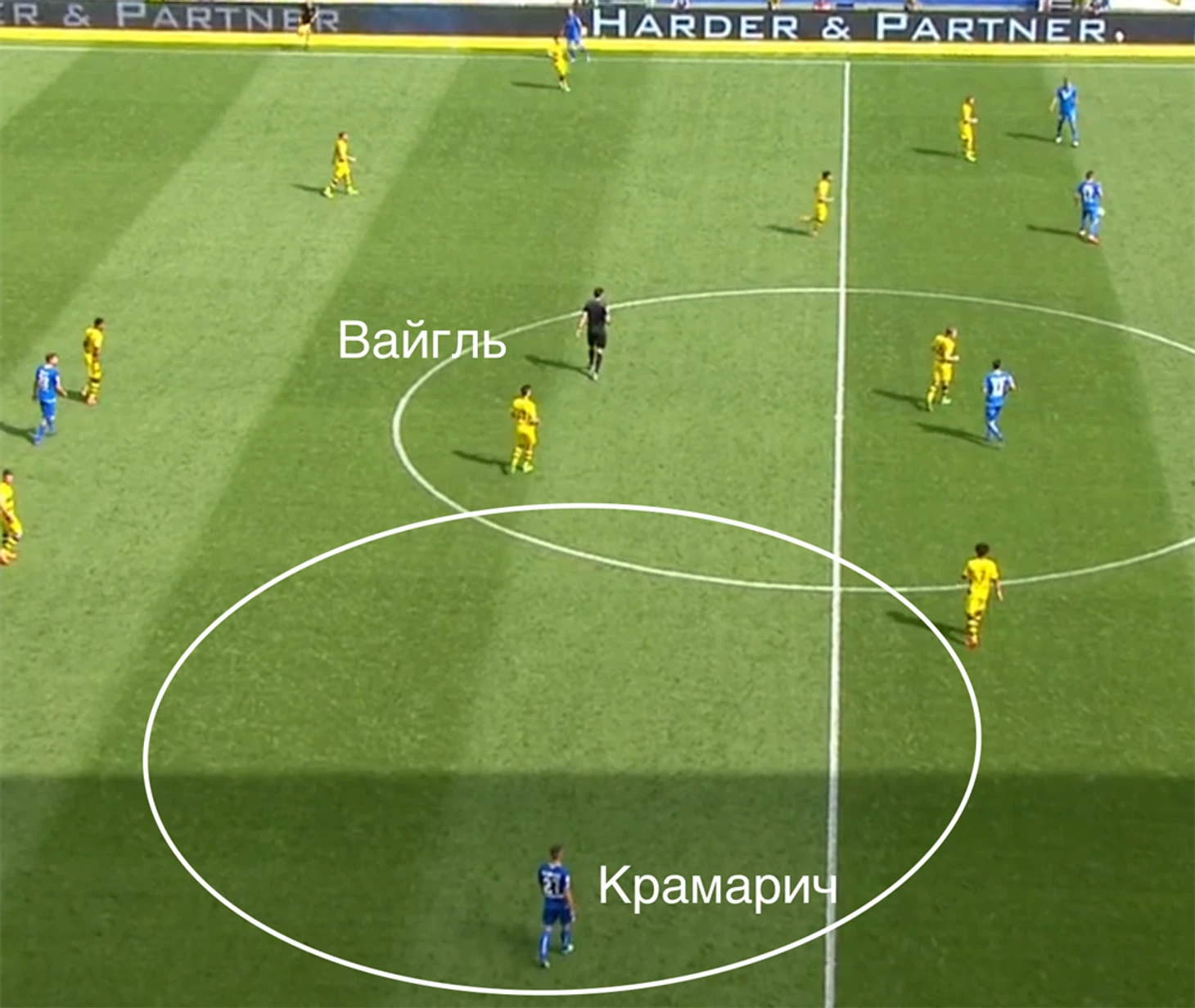 Вот к чему Боруссия почему-то оказалась недостаточно готова, так это к движению Крамарича. Видно, что у Вайгля не было задачи играть персонально по 27 номеру.Мы не раз видели, как перед Крамаричем оказывалось пол поля и варианты острого продолжения атаки