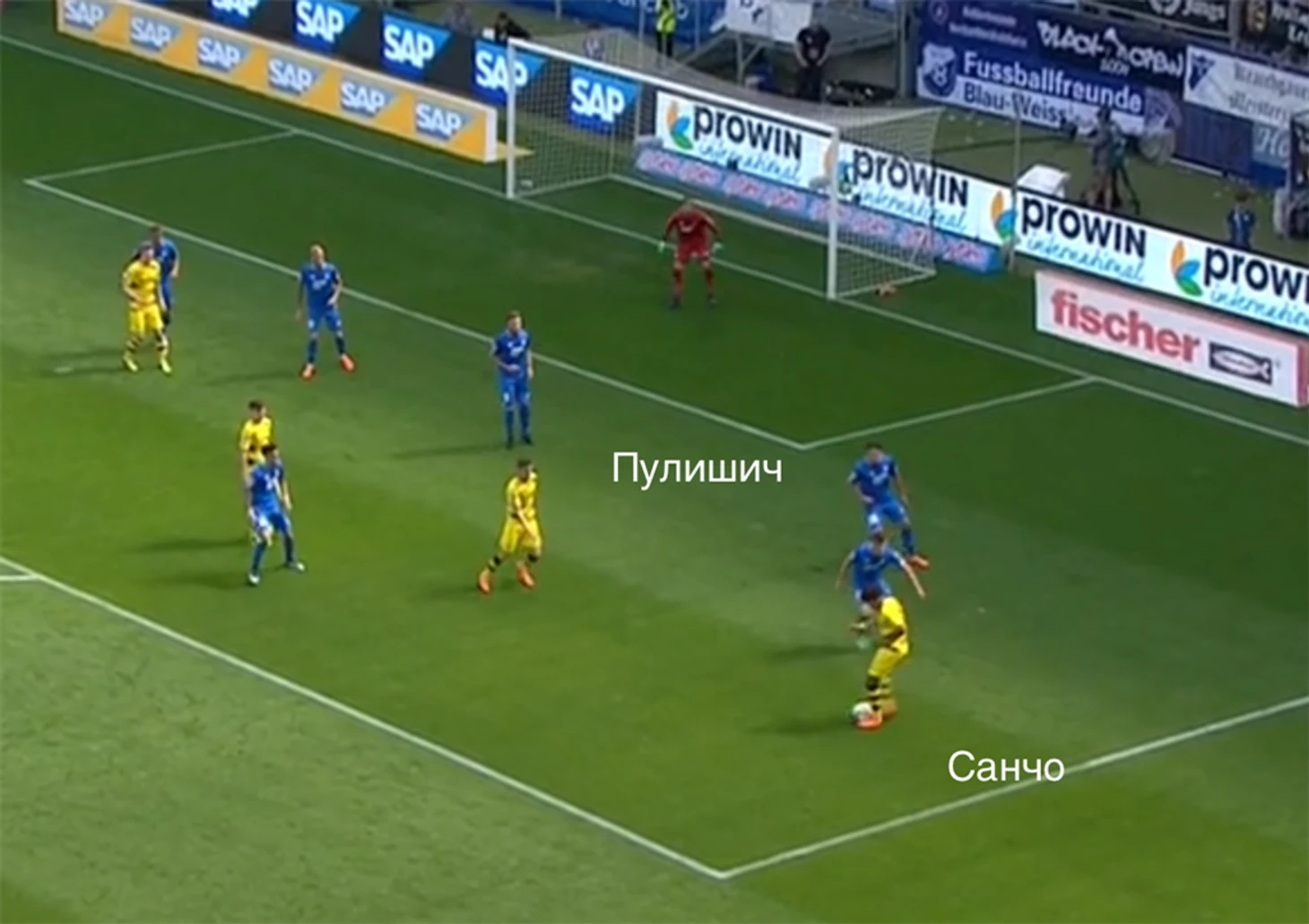 Даже когда у Аканджи появилась призрачная надежда прорезать линии обороны Хоффенхайма, он благополучно пустил мяч мимо партнера. Хотя, даже если бы Санчо его принял, его благополучно затоптал бы плотно играющий соперник.