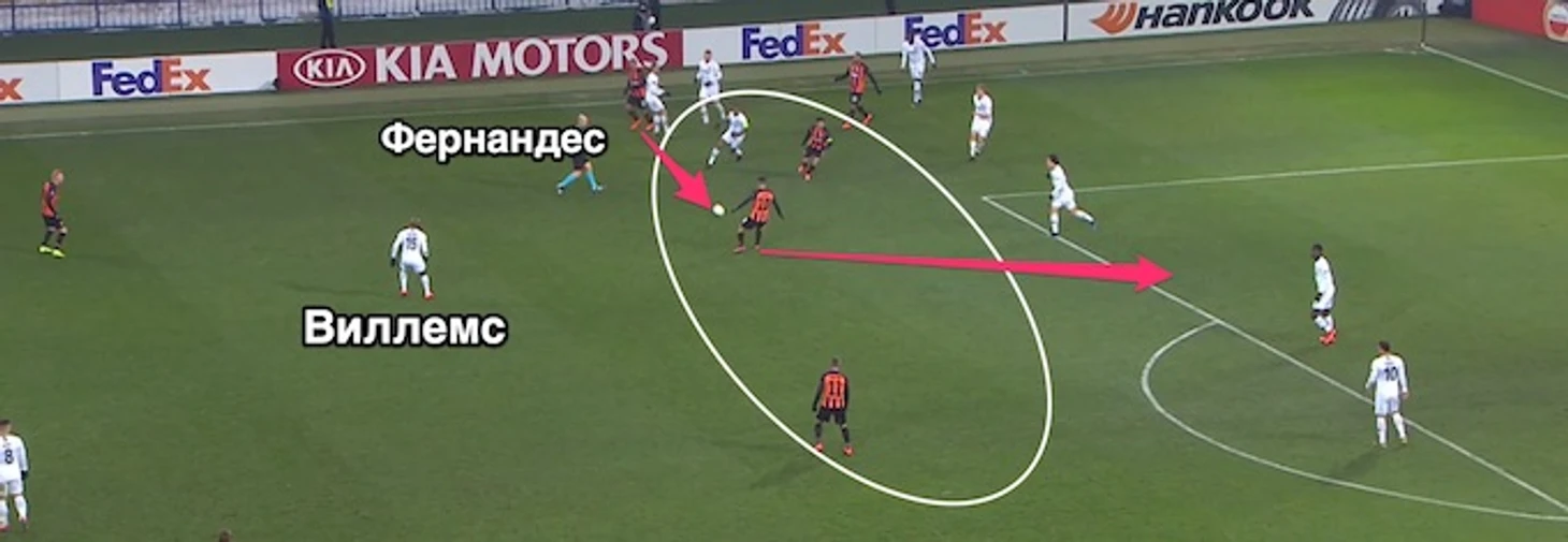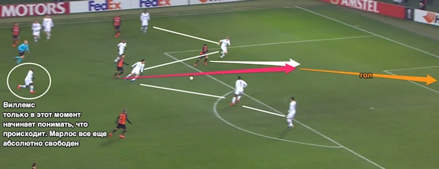 Сменив Роде, Виллемс вышел на поле помогать Фернандесу в опорной зоне и сдерживать бразильцев «Шахтера». В ситуации, когда горняки сравнял счет, Йетро просто проспал момент очередного перегруза опорной зоны его команды и спокойно себе стоял отдыхал в центре поля. Фернандес, оказавшись в полупозиции ,проспал передачу на Мораэса и дальше уже пошла цепочка разменов в пользу «Шахтера». На будущего игрока матча выбросился Хасебе, но десятый номер хозяев успел отдать идеальную передачу на Тайсона, вбежавшего в коридор между Хинтереггером и Ндика.