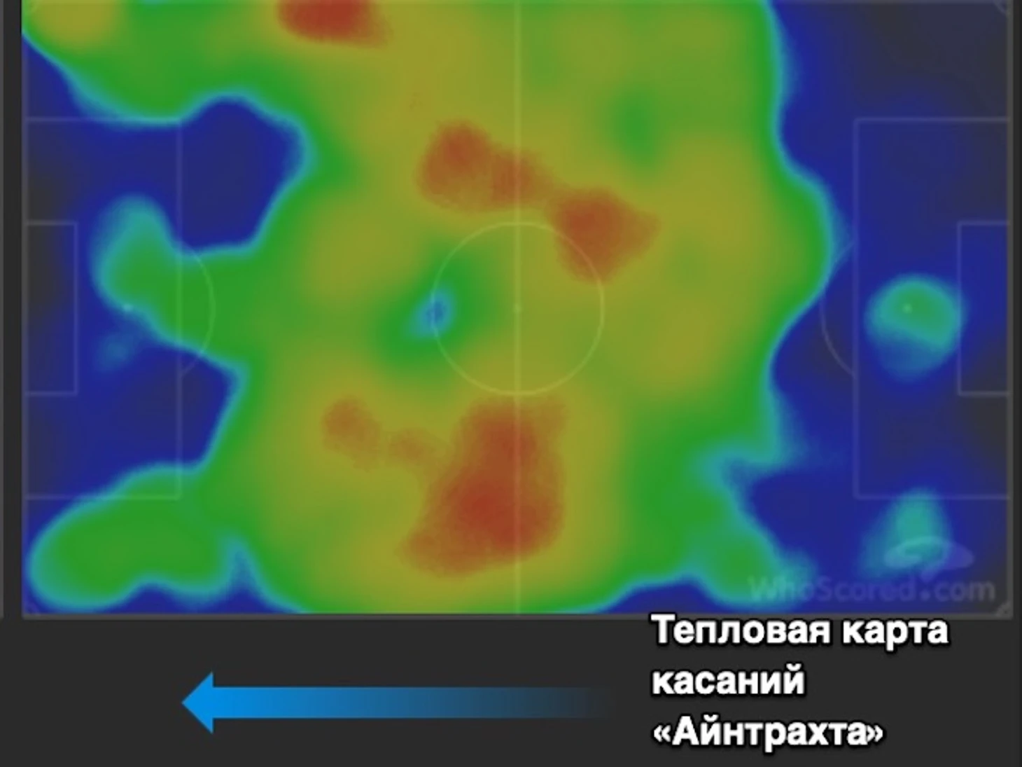 Хоть «Айнтрахт» и не реализовал ни одного из моментов, которые появлялись у тройки нападающих, основная опасность шла именно от них. Как бы классно хозяева в меньшинстве не двигались, класса Коваленко и Патрика все равно не хватало, чтобы стабильно перекрывать все пути передвижения мяча через центр. Главной целью всегда был игрок, который ситуативно оказывался на позиции «десятки». Дальше уже он выбирал направление последней передачи.
