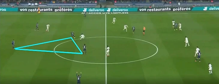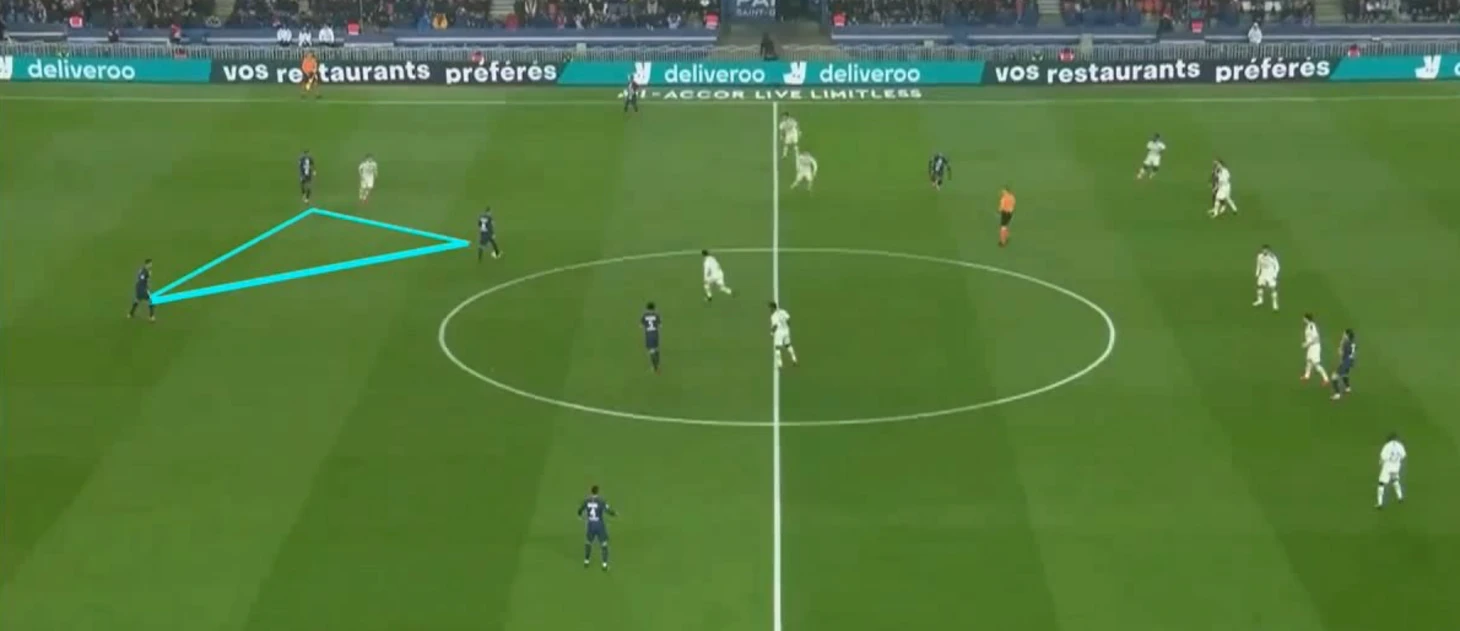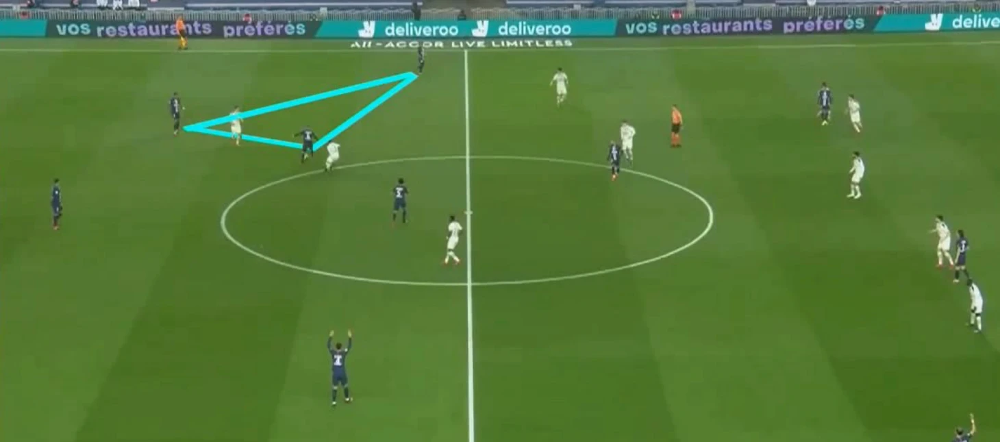 Марко движением создает треугольники, тем самым развивая атаку команды.