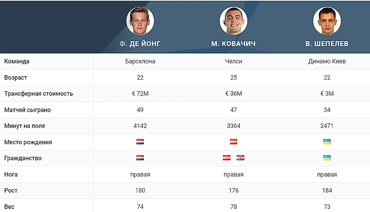 Статистические показатели этих футболистов.