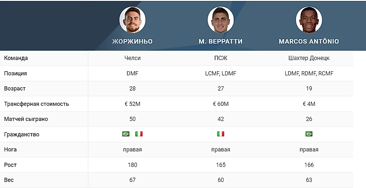 Тут явно выделяется Маркос, но мы должны понимать, что уровень соревнований, в которых он участвует, не такой, как у двух других футболистов. Также нужно учитывать его возраст (19 лет) и возможный прогресс в дальнейшем.