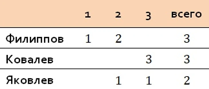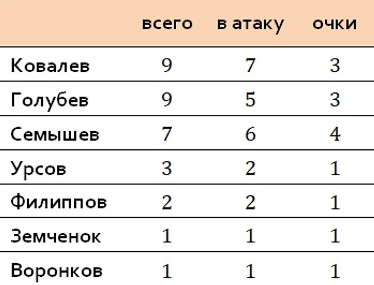 Федя отсутствовал во второй партии, а то стал бы самым результативным. Самым универсальным у нас стал Ваня Яковлев: он набрал двух очков в каждой номинации. Ковалев в третьей партии умудрился стать самым результативным в команде, и тоже набрал очки всеми способами.