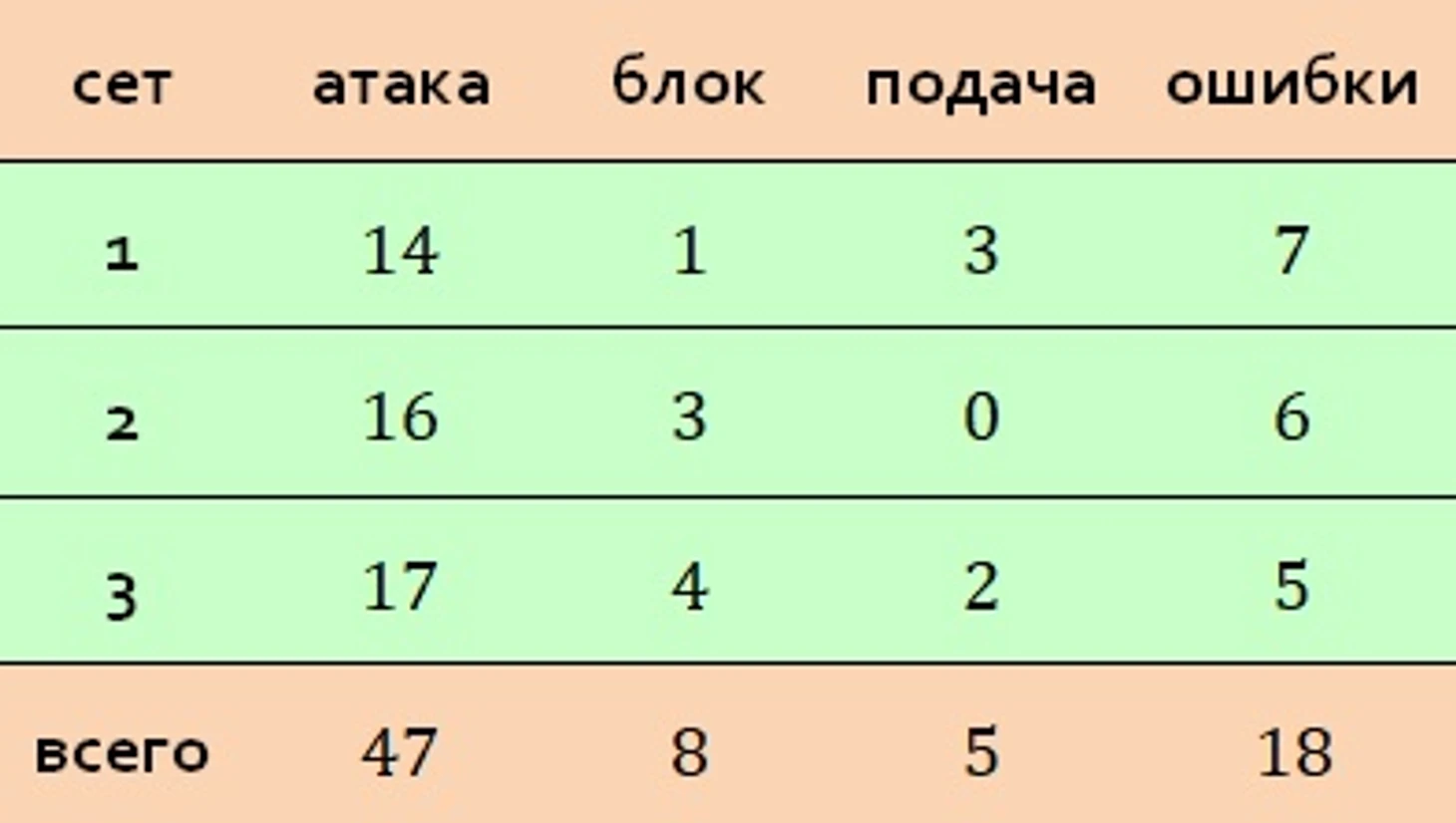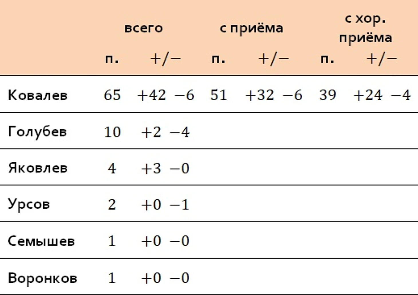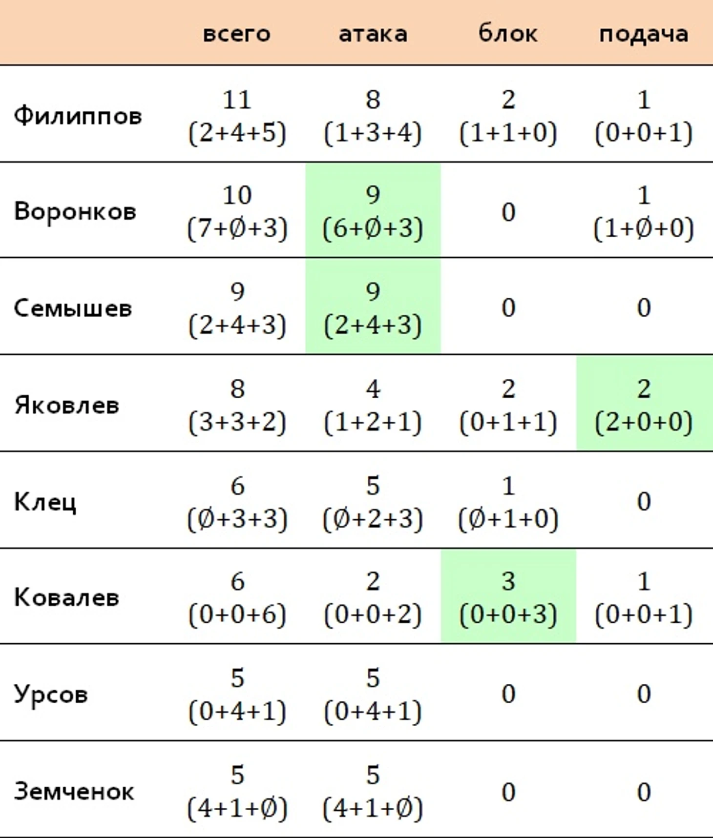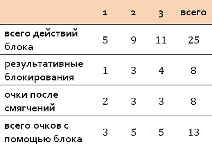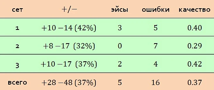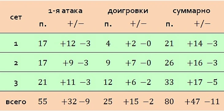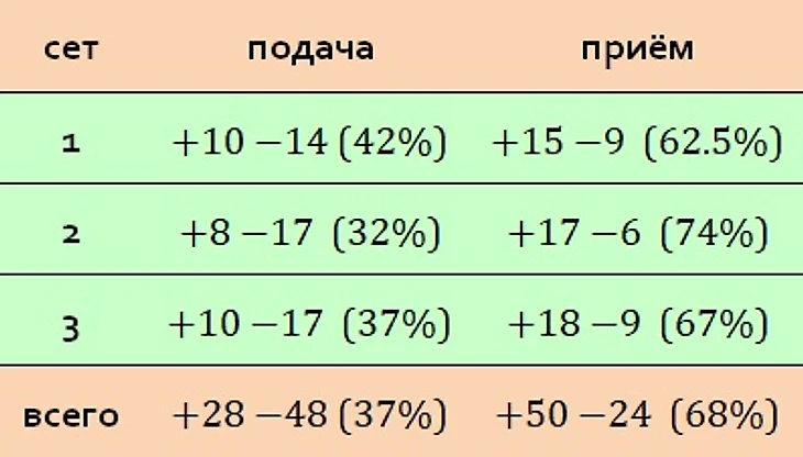 Расклад очков на подаче и в приёме с точки зрения сборной России: