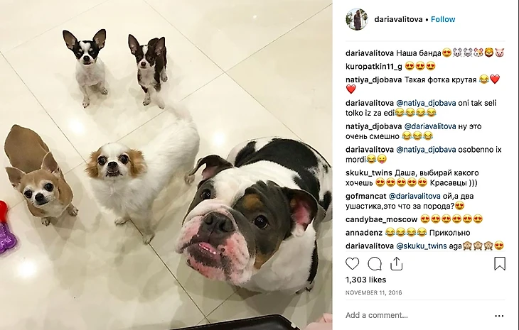 Охранять покой игрока будут не сторожевые псы «Бутырки», а милый английский бульдог, у которого еще недавно была собственная страничка в соцсетях, и другие породистые собаки, принадлежащие Дарье Валитовой.