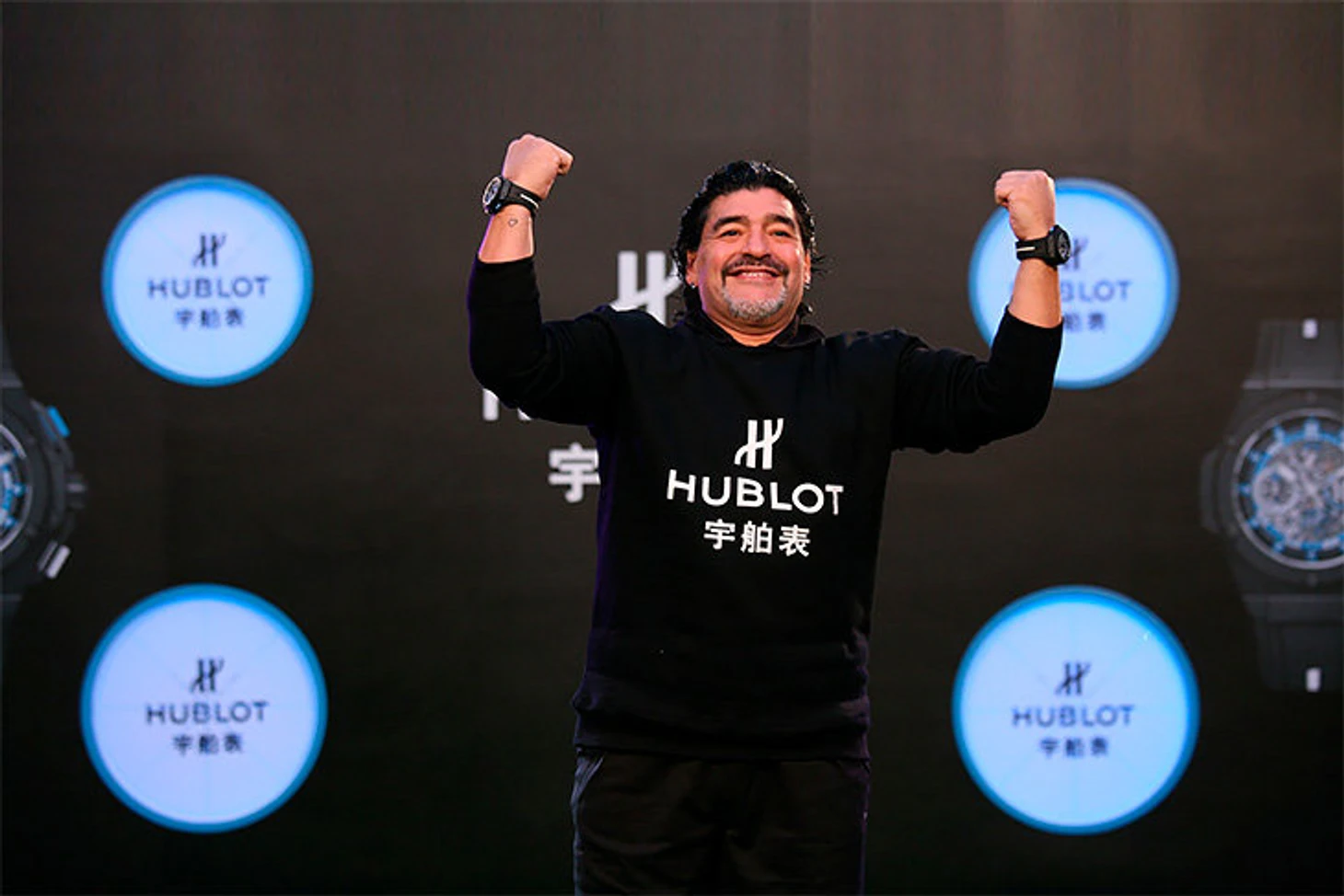 Hublot сейчас тратит большие деньги на продвижение в футболе. Единственный официальный магазин бренда в России приезжал открывать Пеле, а в рекламе швейцарцев снимался Диего Марадона.