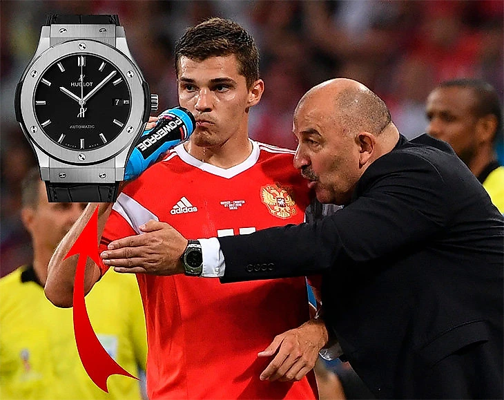 Главный тренер сборной России Станислав Черчесов – большой поклонник качественных швейцарских часов. Вот модель, в которой его чаще всего можно было видеть на ЧМ-2018.