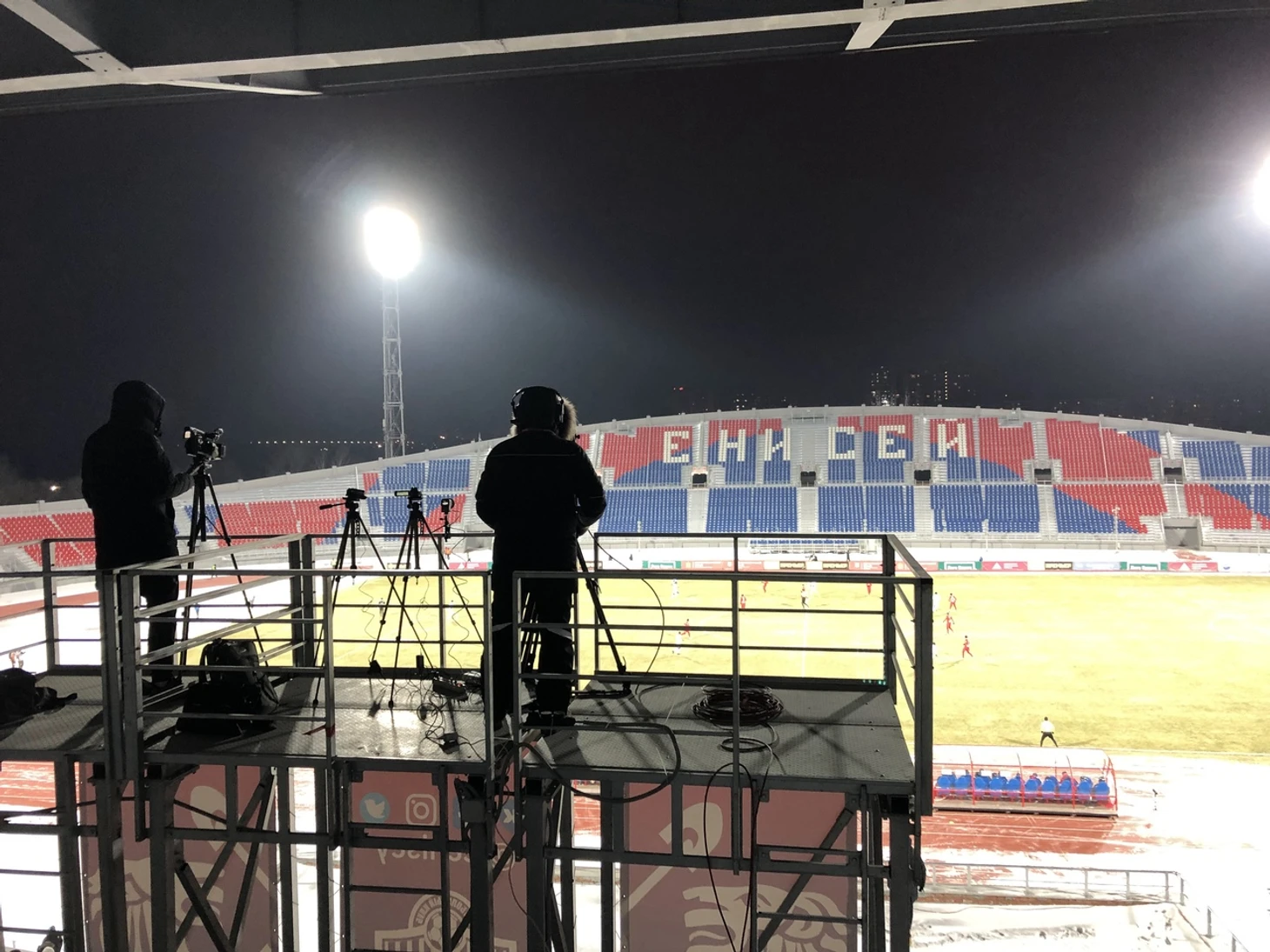 В самом конце тура была пресс-конференция организаторов – самый важный пункт программы и единственный, с которого мы слиняли – первый тайм матча «Енисей» - «Ахмат» уже шел полным ходом. По дороге в такси написали Стасу Меркису, пресс-атташе «Енисея», он оперативно подготовил для нас аккредитации.