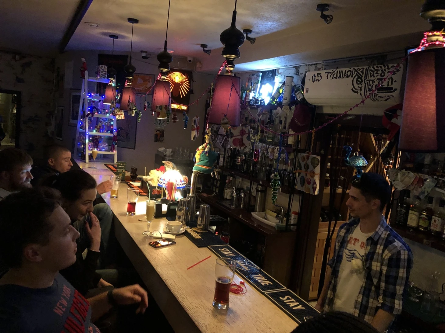 А мы побежали на уже заказанное такси, которое за 10 минут домчало нас до бара «Нет проблем», где можно было согреться и снаружи и внутри, где нас ждали уже хорошо знакомые «болотные шлюхи», бармен Фил, веселые и уже подвыпившие девчонки, а также местный бородач по имени Паша, который на моей памяти лучше всех разбирается в американском футболе и считает, что карим Бензема – хороший нападающий, один из лучших в мире. Нет проблем.