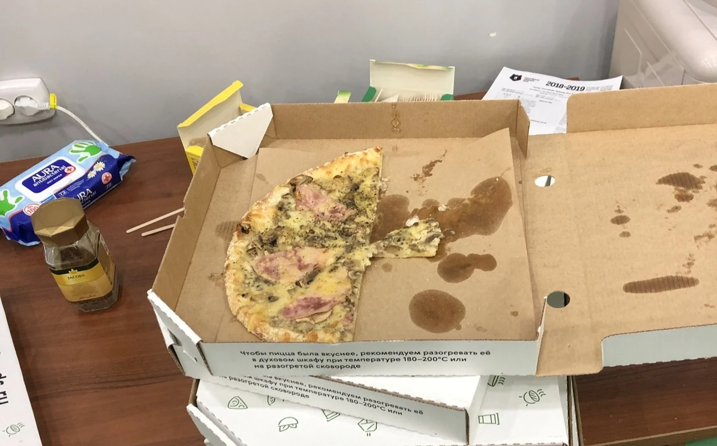 К нему стоит очередь – за горячим чаем. Ломимся в одну дверь – не та. В другой нас тоже посылают. Наконец вваливаемся в пресс-центр, где Стас как раз приносит горячую пиццу для журналистов.