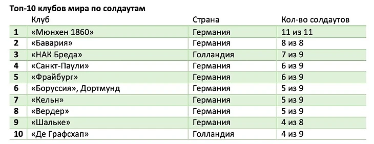 Да и вообще в рейтинге 8 мест из 10 заняли немецкие клубы. В ним удалось присоединиться только двум голландским командам, причем, это не «Аякс» и даже не «Фейеноорд», а «НАК Бреда» и «Де Графсхап».