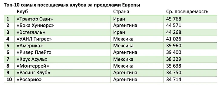 Нам стало немного обидно, что в Топ-20 самых посещаемых команд планеты не попало ни одного неевропейского клуба. мы решили собрать отдельный рейтинг – Топ-10 самых посещаемых команд не из Европы.