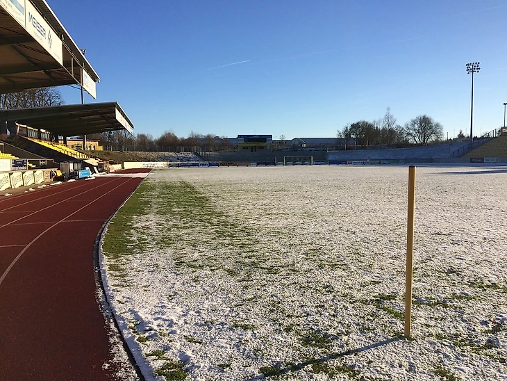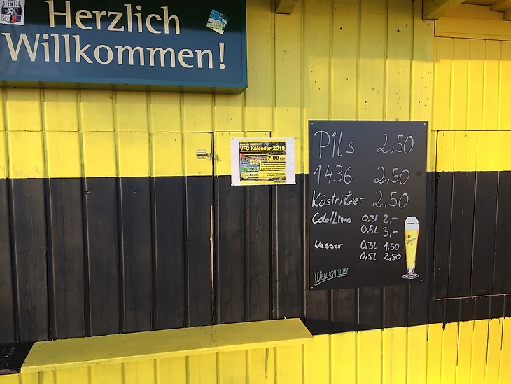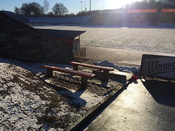 В общем, стоя на Badkurve, во мне пробуждались какие-то несуществующие воспоминания, перед глазами появлялись картинки сначала нацистской Германии, затем ГДР и объединения страны. Может быть на меня так подействовал свежий морозный воздух или атмосфера старых трибун и деревянных палаток, где во время матча наливают местный Sternquell и раздают вкуснейшие сосиски? Но сейчас, зимой, когда чемпионат приостановлен, все тихо спит под снегом. И крытые трибуны, и поле с натуральным газоном, и беговые дорожки, и даже ларек-барбекю.