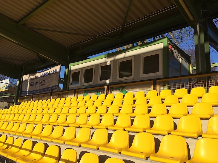 Кстати, абсолютно везде на стадионе можно побывать без лишних проблем. Ворота открыты, никаких заграждений нет. Предполагается, что это народный стадион, а значит доступ разрешен всем. Медицинские носилки, швабры, импровизированная тренерская доска – все это доступно простому прохожему. Наверное именно этим и притягивает клуб «Плауэн» - своей близостью к народу. «Город и клуб – единое целое» - написано на одном из стикеров, наклеенных на кассах при входе.