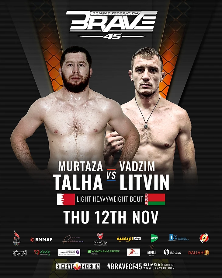 19 ноября на турнире BRAVE CF 45 в профессиональных смешанных единоборствах дебютирует 2-х кратный чемпион мира по ММА Муртаза Талха. Дагестанец, представляющий Бахрейн, 2 года подряд считался сильнейшим полутяжем планеты среды любителей и занимал 6 строчку в рейтинге P4P.