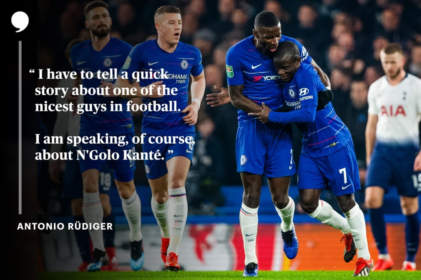 Трофеи, которые я выиграл здесь – это здорово, однозначно. Но что действительно сделало «Челси» для меня особенным местом, это друзья. Мы больше, чем просто партнеры по команде. Очень многие – НГ, Кова, Зиеш, Лукаку – они мне как братья. Это редко встречается в футболе, правда. И, если все нужно описать в одной сцене, то я выберу…момент в туалете после того как мы выиграли в финале Лиги Чемпионов.