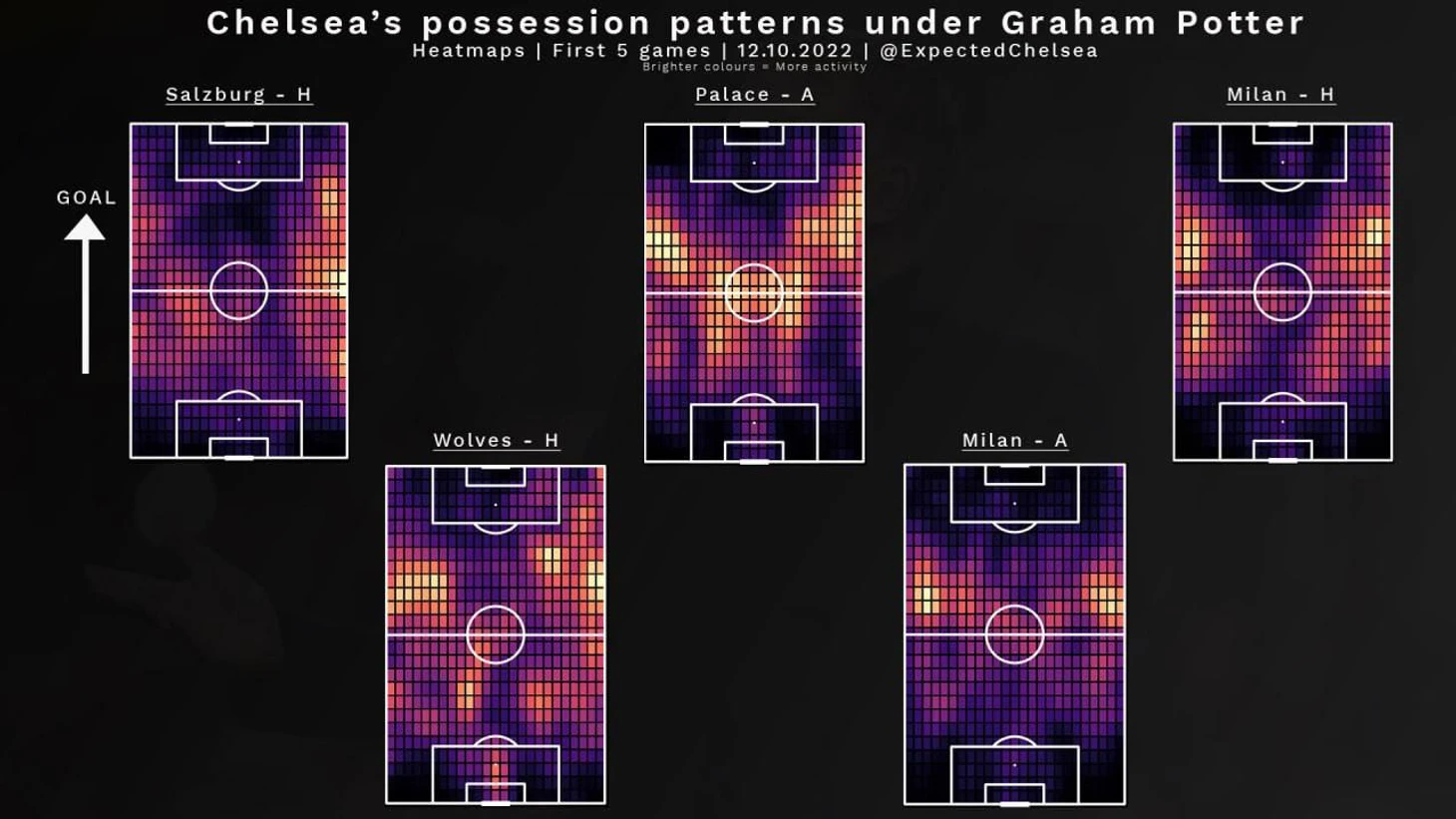Кроме того, Поттер действительно здорово подбирал стартовые планы на большинство матчей. Но целый ряд травм заставил Грэма заниматься не выискиванием слабых мест в составе соперника, а тщетными попытками залатать собственные дыры. Повреждение Фофана открыло двери для Трево Чалобы, но заметно ограничило ротацию защиты. Это, в свою очередь, привело к перегрузке Калиду Кулибали. Травма сенегальца вынуждала использовать Марка Кукурелью на позиции левого центрального защитника, где он выглядел не лучшим образом. Ротация на позиции латераля стала заметно менее интенсивная, что привело к травме Бена Чилуэлла. На правом латерале ротации вообще толком не было – Рис Джеймс тоже вылетает. Добавьте к этому повреждение Кепы, которого Поттер определил как основного вратаря (в частности, благодаря его помощи в выходе из-под прессинга через пас), и рецидив Н’Голо Канте.