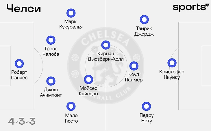 Ачимпонг и Джордж вполне могут оказаться в старте. Кайседо с Энцо наверняка поделят игровое время, а Дьюзбери-Холл вполне может рассчитывать на полный матч. Кукурелья сыграет в старте, а во втором тайме его может сменить слева Гюсто (если справа будет готов сыграть Джеймс). Вероятно увидим и Бадьяшиля, который по словам Марески готов к матчу.