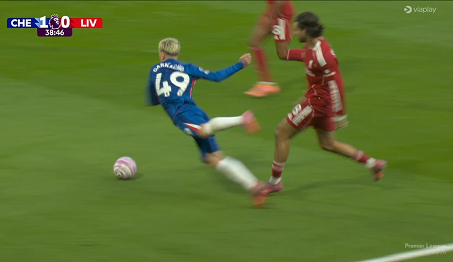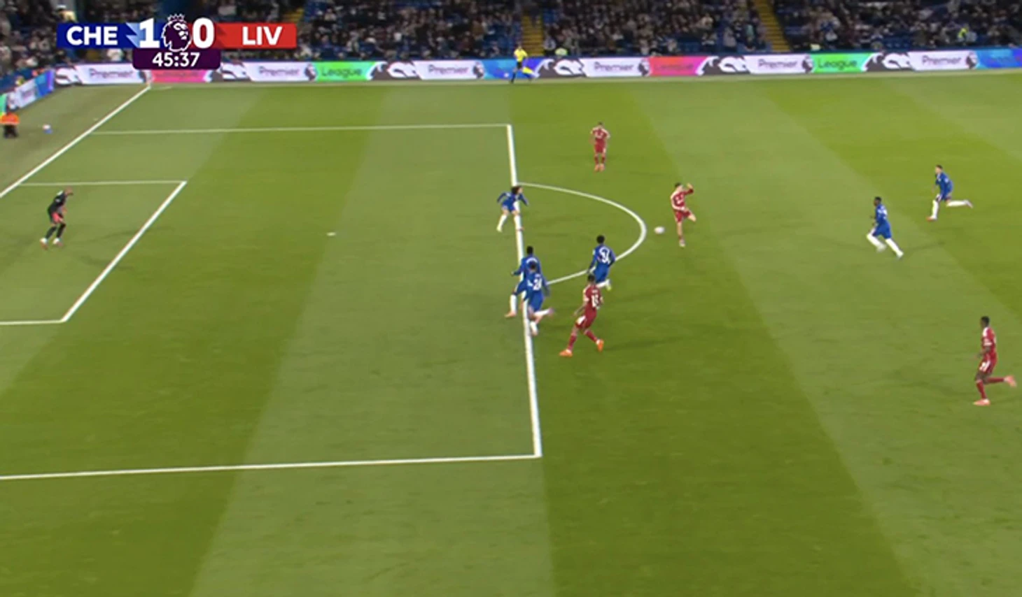 В остальном первый тайм вышел довольно низовым: всего пять ударов на двоих. Зато «Челси» активно прессинговал и хорошо ограничивал чемпионов Англии. А еще просил пенальти за падение Алехандро Гарначо в штрафной: аргентинца чуть толкнул Доминик Собослаи – и вингер повалился на газон. Но Арбитр Энтони Тэйлор и ВАР не повелись. Энцо Мареска доспорился до желтой.
