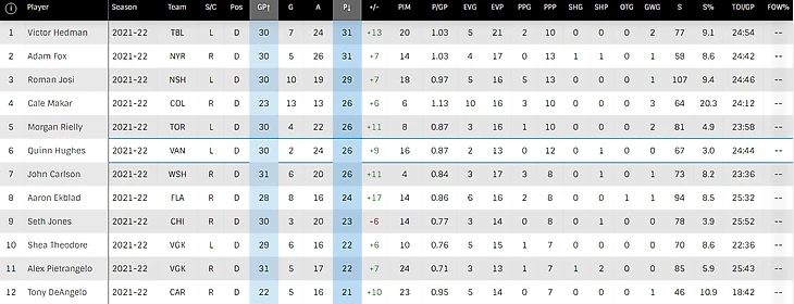 Самый результативный защитник – Девон Тейвс (2+14 в 11 играх). Мистер Сакик продолжает соревноваться со своим вечным соперником Стивом Айзерманом и на поприще генерального менеджера, урвав Тейвса всего за два пика второго раунда и подписав контракт менее чем на 4 млн. Хедман второй по результативности (4+10), но у него больше игр, чем у группы ближайших преследователей – Макара, Райлли и Фокса.