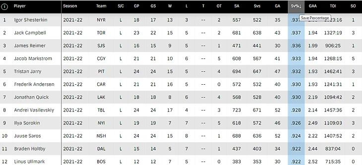 По вратарям – вместе со всей командой из реанимации вышел Тэтчер Демко – 6 побед в 7 играх, 94,4% отраженных бросков. Андерсен, как и Василевский, не знает поражений – 5 из 5, но с более сильной статистикой. Также удивляет Чарли Линдгрен, подвинувший с позиции стартера Биннигтона в составе «Блюзменов».