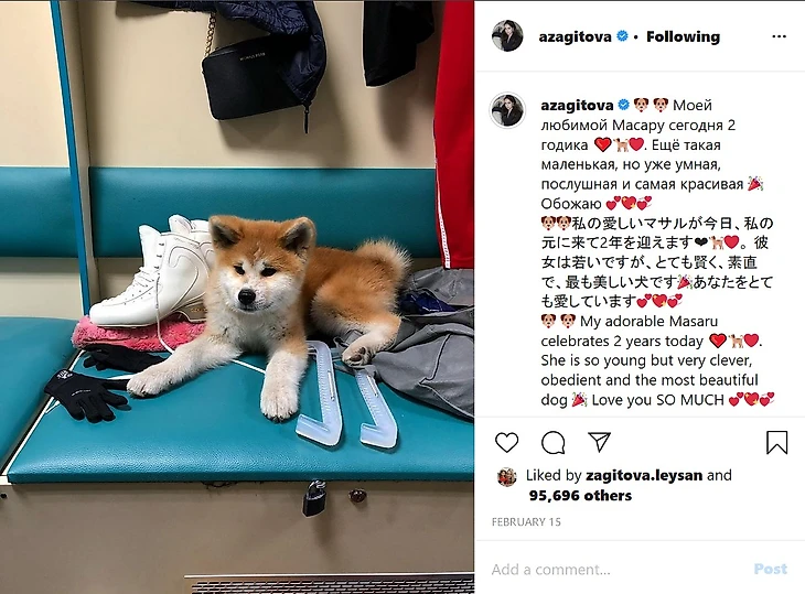 "Моей любимой Масару сегодня 2 годика ❤🐕❤. Ещё такая маленькая, но уже умная, послушная и самая красивая 🎉Обожаю 💕💖💞".