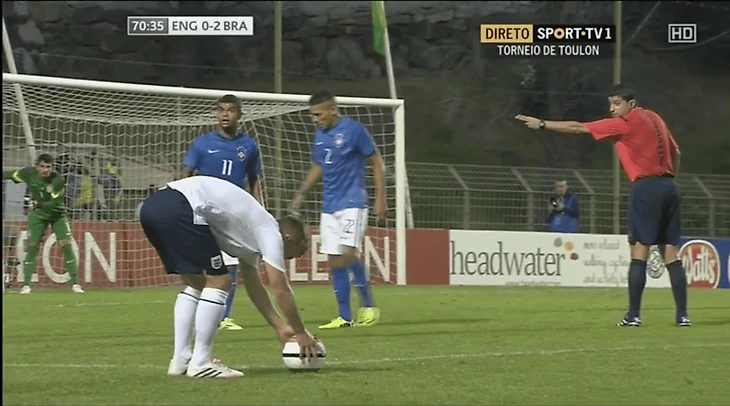 Приведенные выше эпизоды — матчи на выезде против «Кристал Пэлас» в декабре 2021 г. и «Фулхэма» в январе 2023 г. Ниже показано, как Уорд-Проуз устанавливает мяч перед тем, как забьет гол против Бразилии (поражение 2:1) на турнире в Тулоне 2014 г. среди юношей до 21 года.