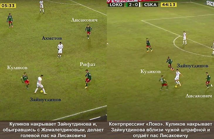 Неразбериха в центральной оси армейцев не могла не сказаться на их оборонительных действиях и выходах со своей половины поля. "Локомотив" при потере мяча моментально включал прессинг, заставляя игроков ЦСКА ошибаться. Наиболее характерной такая картина была для первого тайма, теневым героем которого стал Куликов (11 успешных оборонительных действий за матч, 2 - на чужой половине), дважды вернув владение своей команде под голевую атаку.