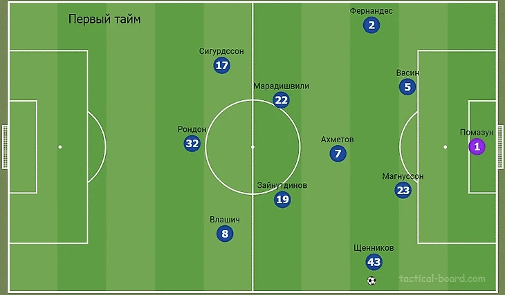 В первом тайме абсолютно потерялся Сигурдссон, хотя именно ему удалось в ситуативном моменте разбить компактность "Локо" в обороне и увести со своей позиции Крыховяка. Но после перерыва он не вышел: Гончаренко пересобрал всю атакующую линию, вернув Влашича в центр и убрав Зайнутдинова на левый фланг обороны.