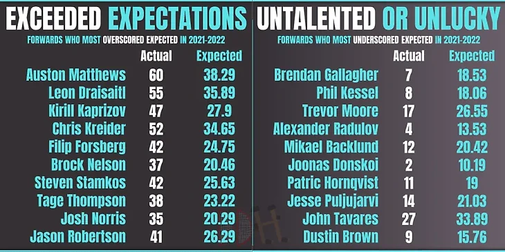 Так же стоит отметить Брока Нелсона (Айлендерс) и Джоша Норриса (Оттава), которые должны были забить по "двадцаточке", а в итоге дали прилично на 30 (37 и 35 соответственно).