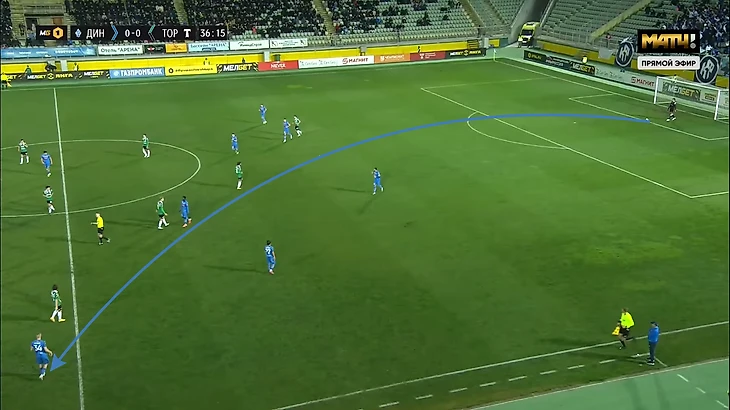 Если группа атакующих игроков не поднимаются высоко при розгырше мяча от ворот, а опускаются ниже, то Динамо разыгрывает мяч, контролирует игру.