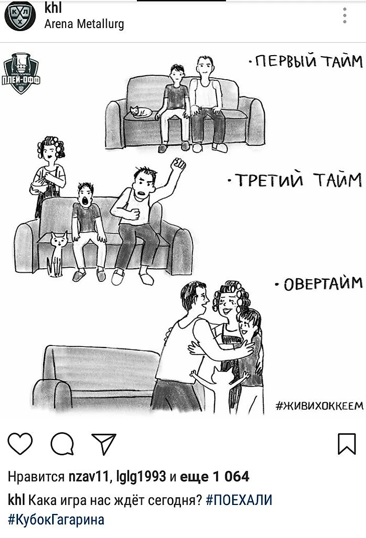 В этом плане интересны и другие шаги лиги. Выполняя установку на «сильную сборную», в дни проведения ЧМ КХЛ переключается на плотное его освещение, но делает это не только в соцсетях и официальном сайте. Так, после поражения в чешском финале от канадцев, все записи в инстаграме и твиттере лиги заполонили любители хоккея, которые экспертно подчеркивали – «Сборная России играла в сложнейших, необыкновенных условиях – всего 6 защитников на льду».