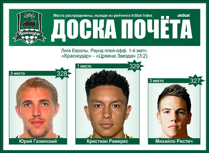 Тройка лучших игроков «Краснодара» в матче против «Црвены Звезды»