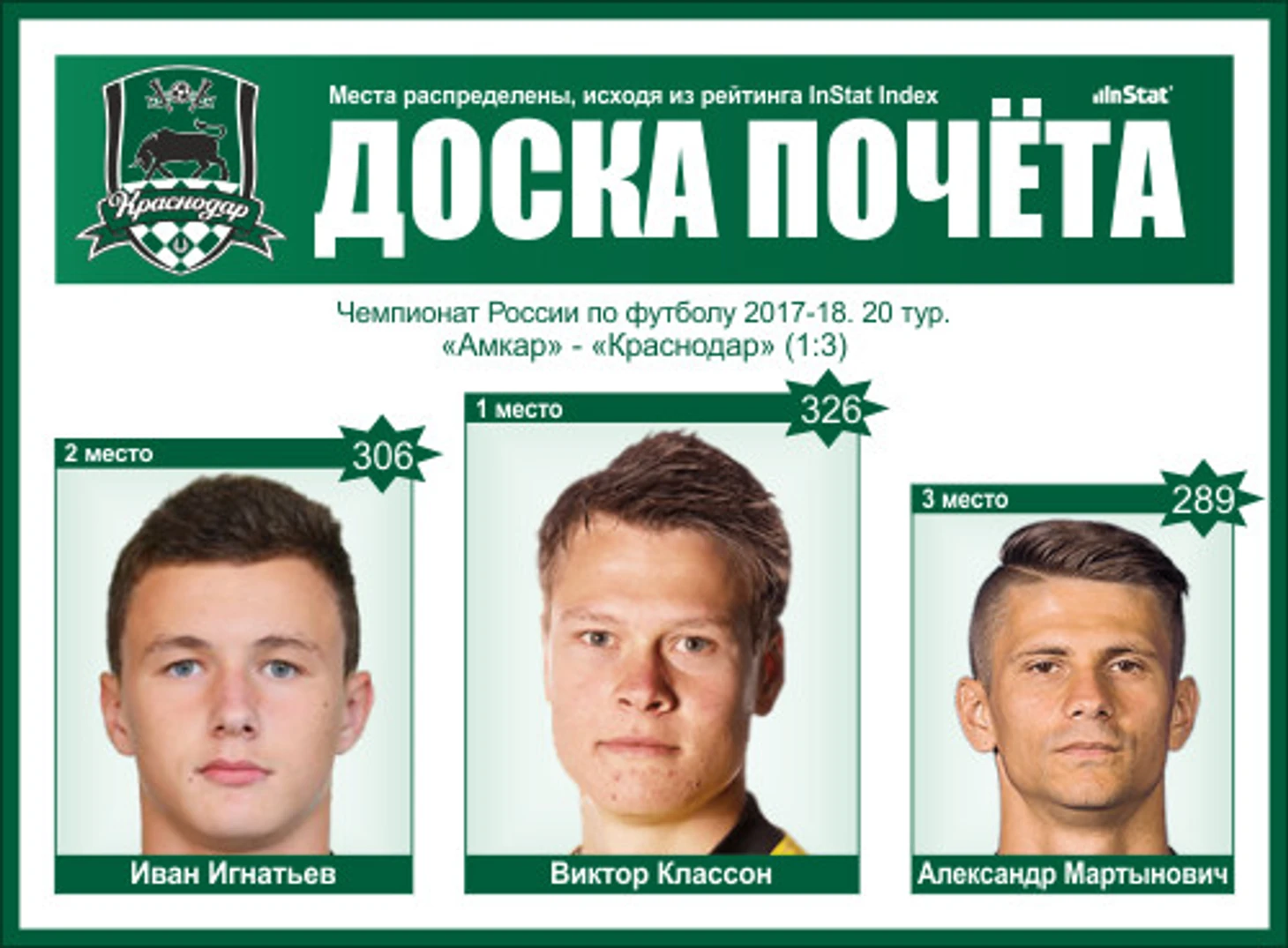 Тройка лучших игроков «Краснодара» в матче против «Амкара»