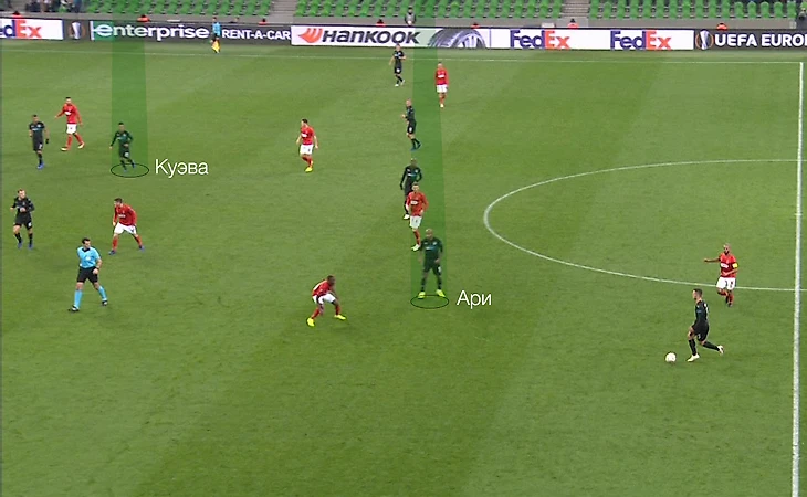 Из-за общей пассивности Куэвы в билдапе, даже Ари приходилось опускаться на помощь: