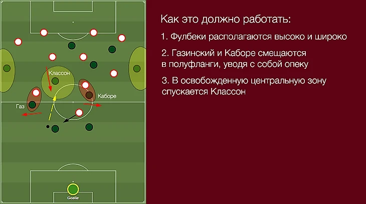 Мусаев продолжает придумывать, как выводить мяч из билдапа без Мамаева. Все чаще в таких эпизодах используется Классон с отвлекающими маневрами Газинского и Каборе: