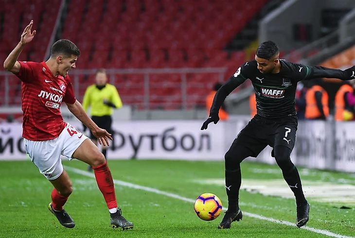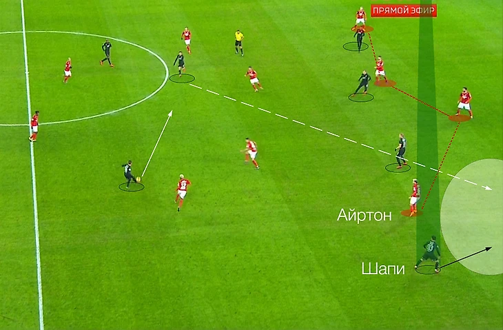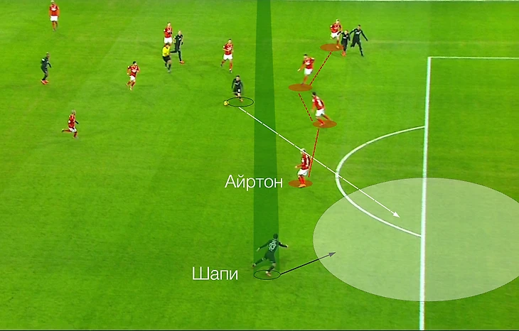 Уже в первом тайме проклюнулась слабейшая зона у Спартака, которой Краснодар периодически пользовался – пространство за спиной Айртона: