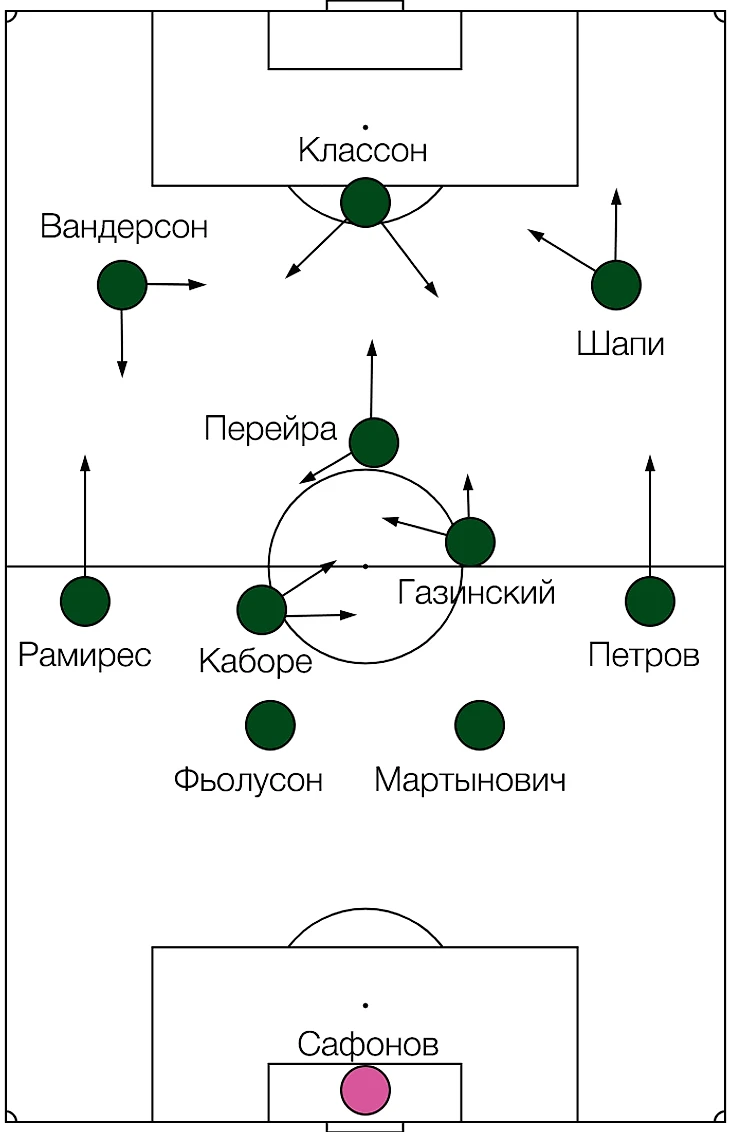 Тут дело не только (и не столько) в скилах молодого форварда. Новый год Иван действительно начал неважно, но не так плохо, как многие сейчас рассказывают. Таинственное исчезновение Игнатьева из основной команды заставило Мусаева вновь переизобретать велосипед командной структуры в третий (или уже в четвертый?) раз в сезоне. Шапи дебютировал в старте на привычной позиции правого вингера, Вандерсон был отправлен на «шалимовский» левый фланг, место форварда занял Классон. Это цепочка перестроений заметно снизила атакующую мощь Краснодара.