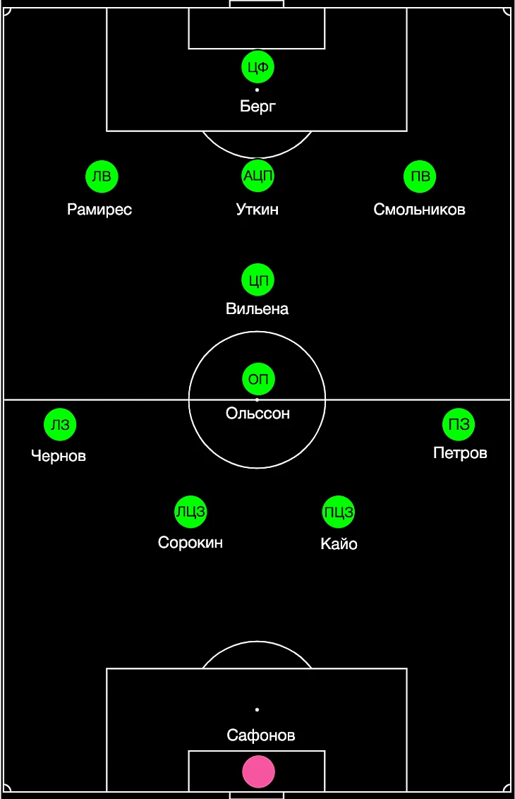Перед игрой «быки» потеряли последнего игрока из краснодарского Big 3 – к травмированным Вандерсону и Классону присоединился Кабелла, у которого выявили сомнительный ковидный тест. В результате чего, состав «Краснодара» выглядел фантасмагоричным – формально 4 крайних защитника в старте. Однако, только на первый взгляд. По сути, после всех потерь, это был единственный и вполне ожидаемый вариант. Смольников и Петров уже удачно играли вместе на фланге против ПАОКа. Чернов дебютировал за Краснодар на позиции левого защитника в игре с «Рубином». Рамиреса мы уже видели на позиции вингера (в том числе и правого!) в критических ситуациях прошлого сезона. Единственной (маловероятной) альтернативой этому сочетанию был перевод Ольссона налево и выход Газинского в старте. Однако, во-первых, Ольссон действительно хорош сейчас в позиции глубинного плеймейкера – эту опцию нельзя было терять, во-вторых, физическая форма Газинского до сих пор вызывает вопросы.