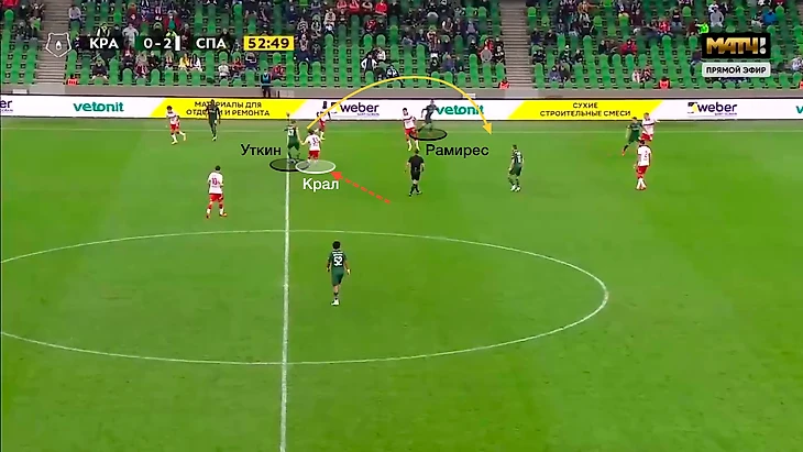 После очередного прессинг-провала Рамирес перестал выходить на Маслова, сосредоточившись на контроле Крала: