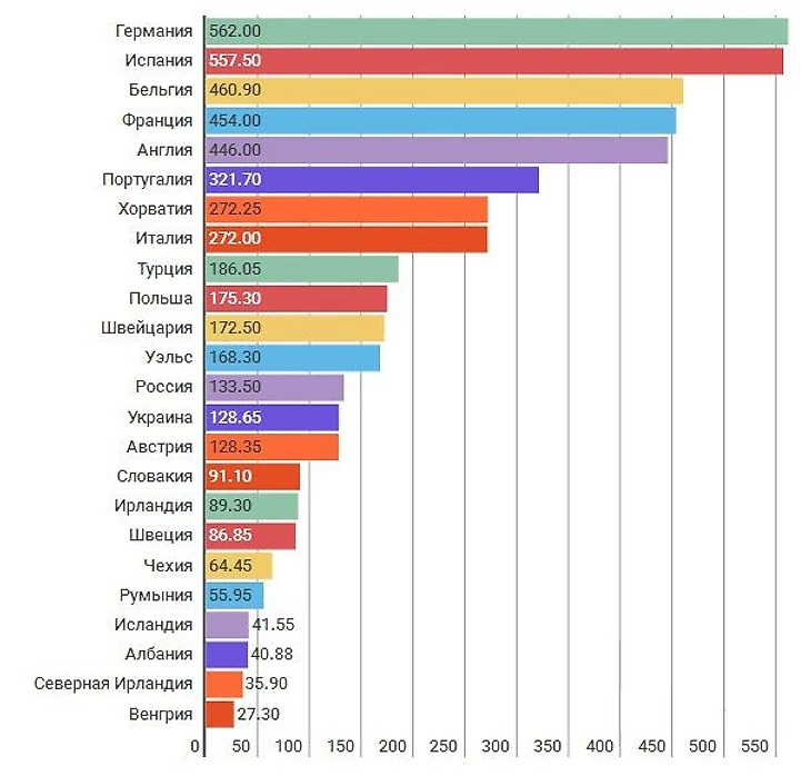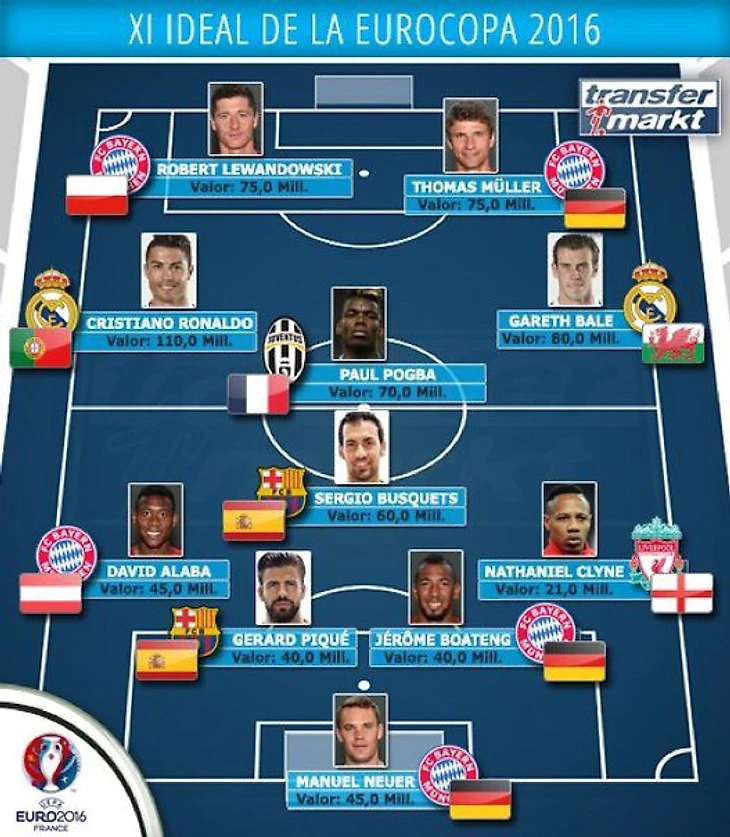 Сборная Германии - самая "дорогая" команда на Евро (по оценкм сайта Transfermarkt). А 5 игроков "Баварии" попали в самый "дорогой" состав турнира.