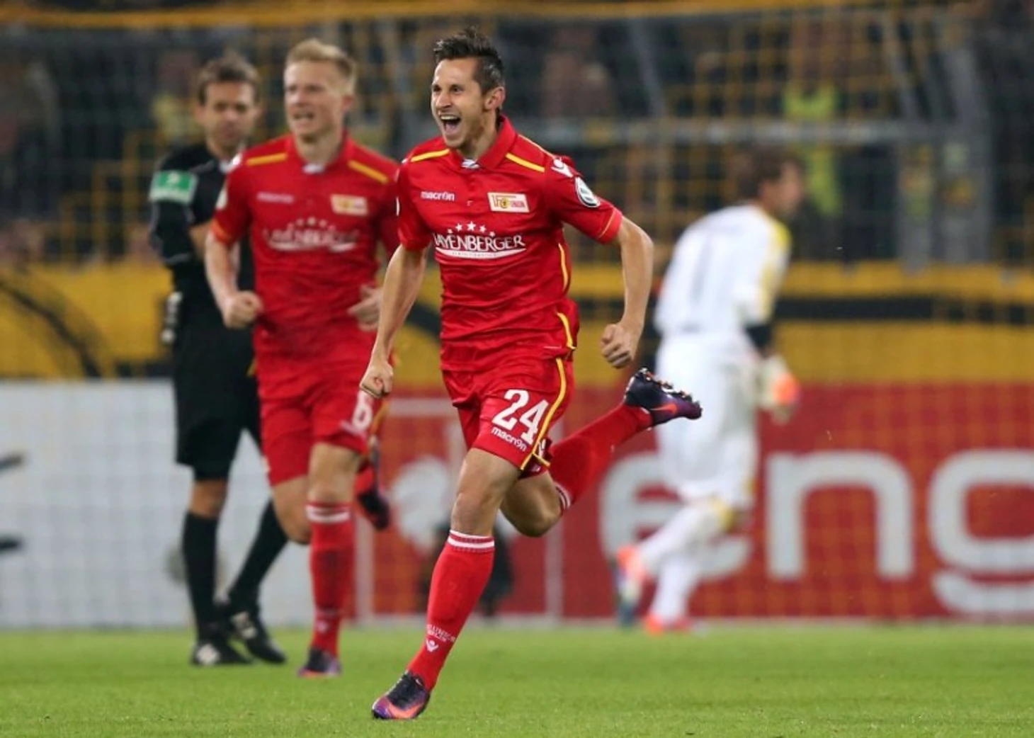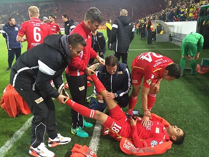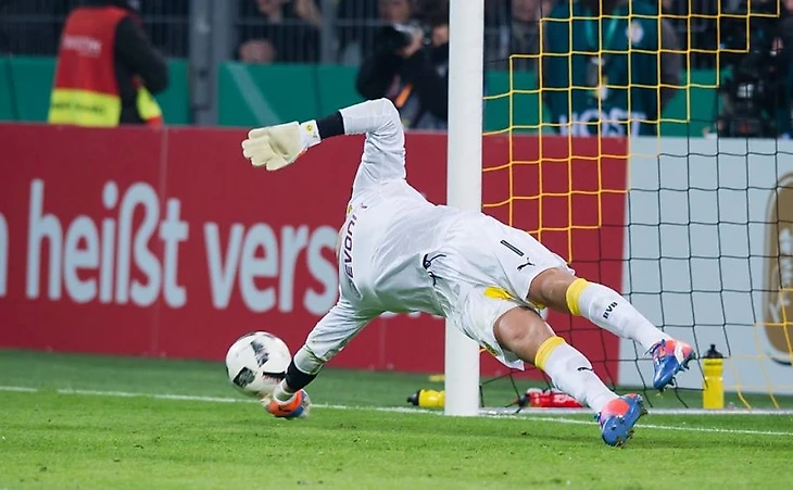 Итак, 120 минут позади, вратари показали себя прекрасно с обеих сторон. Поэтому все ожидали настоящей "русской рулетки". Однако, психологически игроки "Униона" устали больше плюс талант Роман Вайденфеллера, которому сейчас 36, раскрылся на 120%. Вратарь, который признавался лучшим на своей позиции в чемпионате Германии в сезоне 2013/2014, а также, что символично верен "Боруссии" с 2002 года был на высоте! 2 отраженных удара и один на себя приняла перекладина. В этой серии Роман ушел с поля непобежденным.